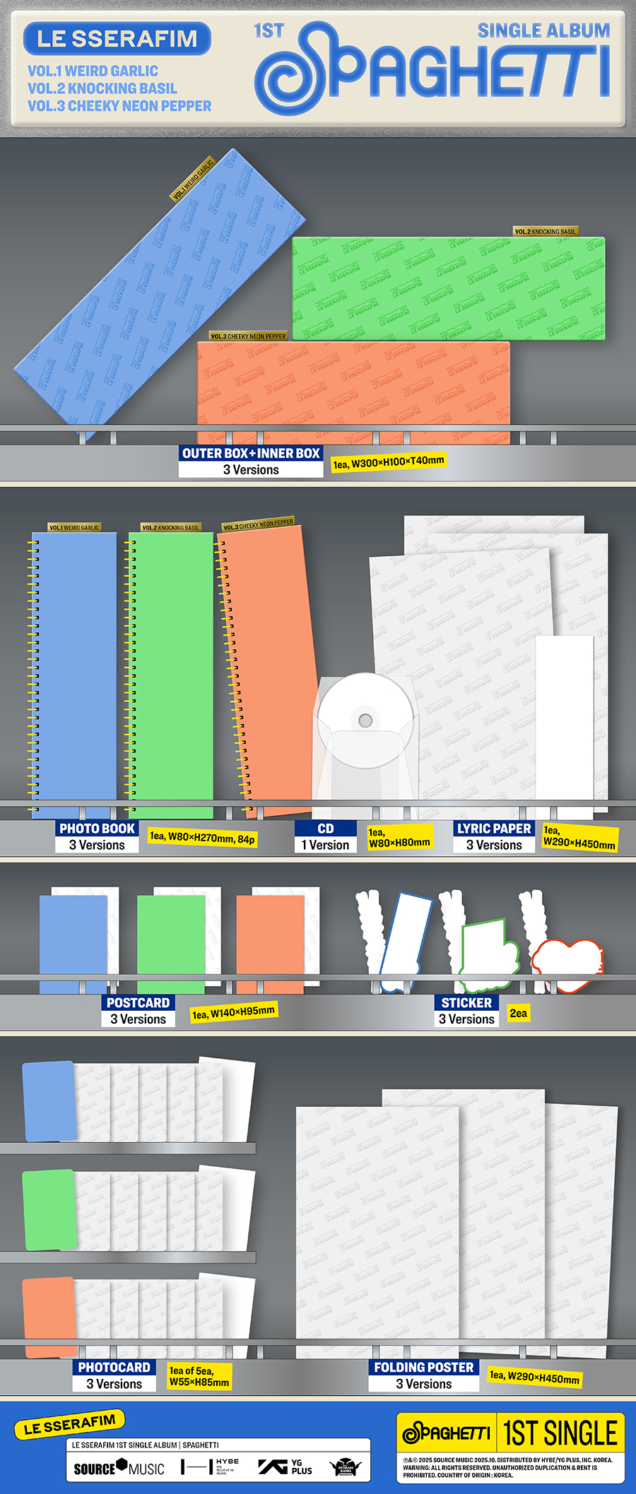 르세라핌 (LE SSERAFIM) - 1st Single Album 'SPAGHETTI' [3종 중 1종 랜덤 발송]