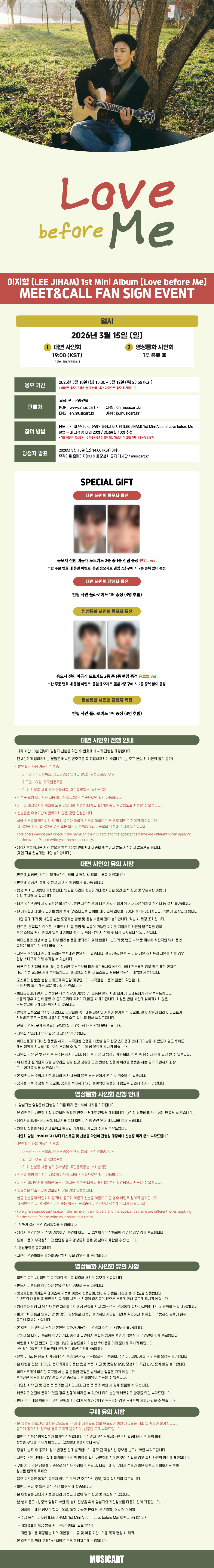 본 이벤트 상품은 응모권이 포함된 상품입니다.구매 완료 후 자동 응모되며, 응모권 사용 처리 되어 취소 및 환불이 불가하니 주의 바랍니다.** 미동의 시 구매 불가합니다. ** 특전, 상품 누락 및 하자로 인한 교환 신청은 상품 수령 후 2주 안으로 문의 부탁드립니다.(누락 및 하자 확인용으로 개봉 시 동영상을 요청할 수 있습니다.) ![]() ![]() ![]() |
